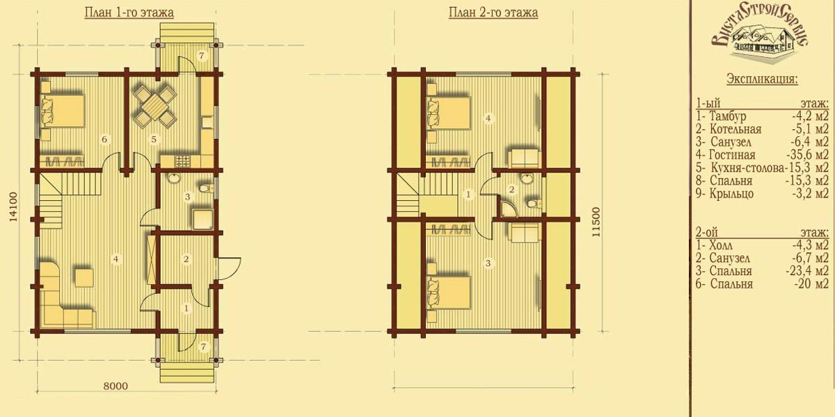 | 2-ой этаж | 11500 х 8000 |