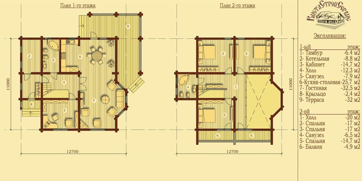 | 2-ой этаж | 11000 х 12700 |