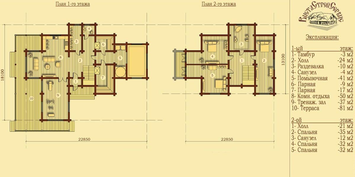 | 2-ой этаж | 13100 х 22850 |
